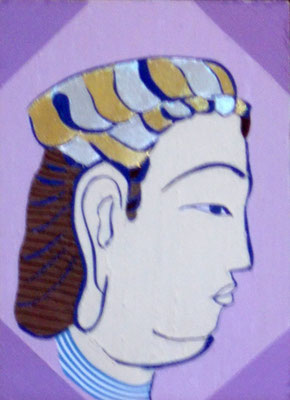 He started to make the thread art in 1994. The main materials of thread are cotton and silk. The method of the thread art is to stick thread on an adhesive board. It takes a month to accomplish a work. He spends 6 hours to create the work per day.